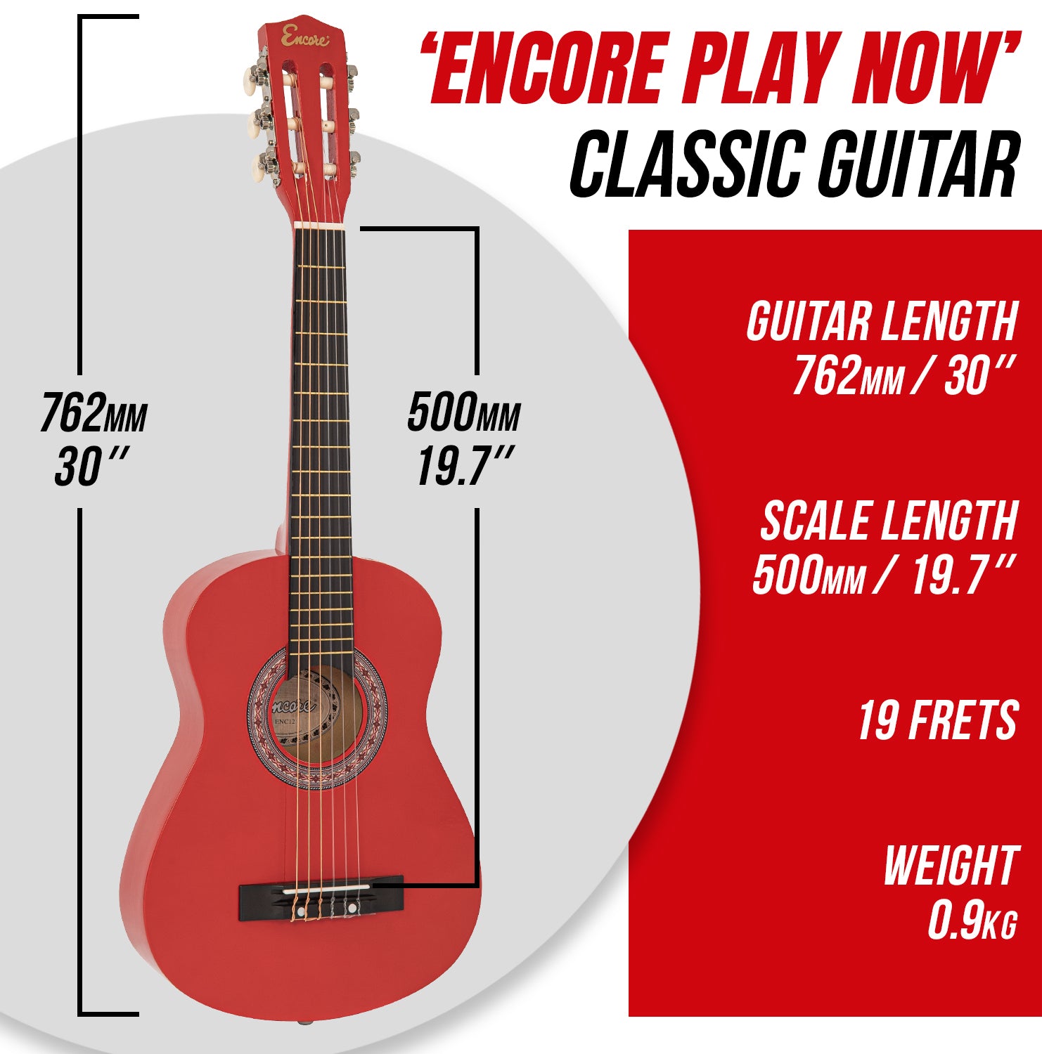 This exciting pack also includes a carry bag, guitar strap, pitch pipe, spare set of strings, plectrums and, for a professional introduction to the world of classical guitar playing, Encore has also teamed up with Your Guitar Academy to provide free online tuition lessons, with beginner’s courses and hints and tips to learn how to play your Encore Classic guitar.