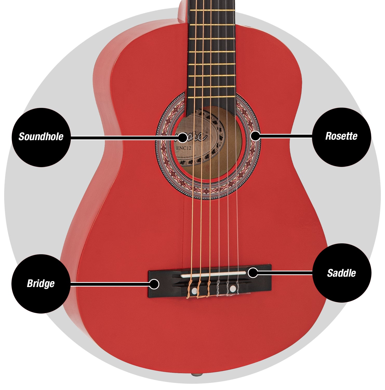 For the guitar itself, Encore have once again looked at the important factors to offer nylon strung, classical style acoustic guitars to suit small hands, these include neck shapes, fingerboard widths and scale lengths.