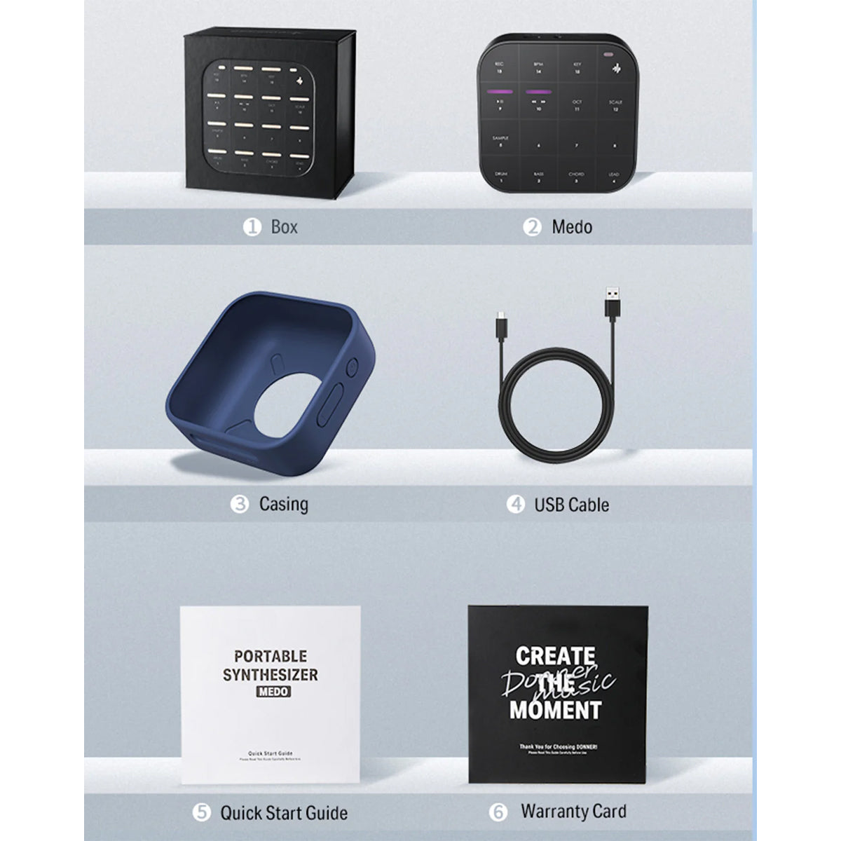 Connect the MEDO to the MEDO Synth desktop software and Donner Play app to unlock additional features. Access various preset sound effects and 15 drum kits from Loopmasters. The MEDO integrates seamlessly with most DAWs, making it easy to incorporate ideas into projects and workflows.