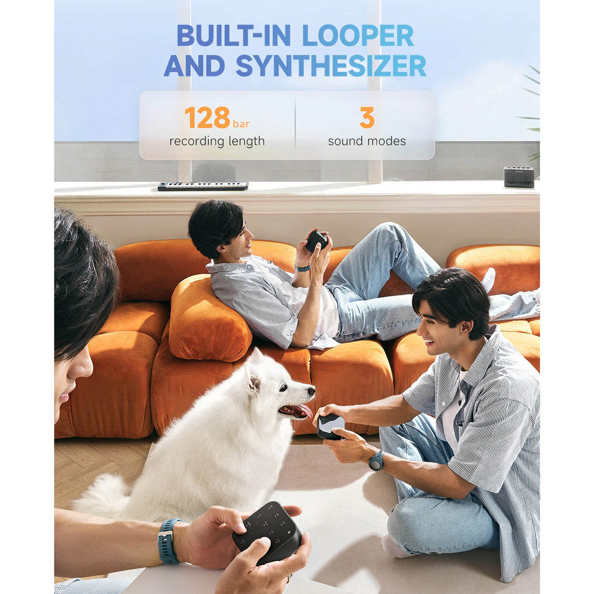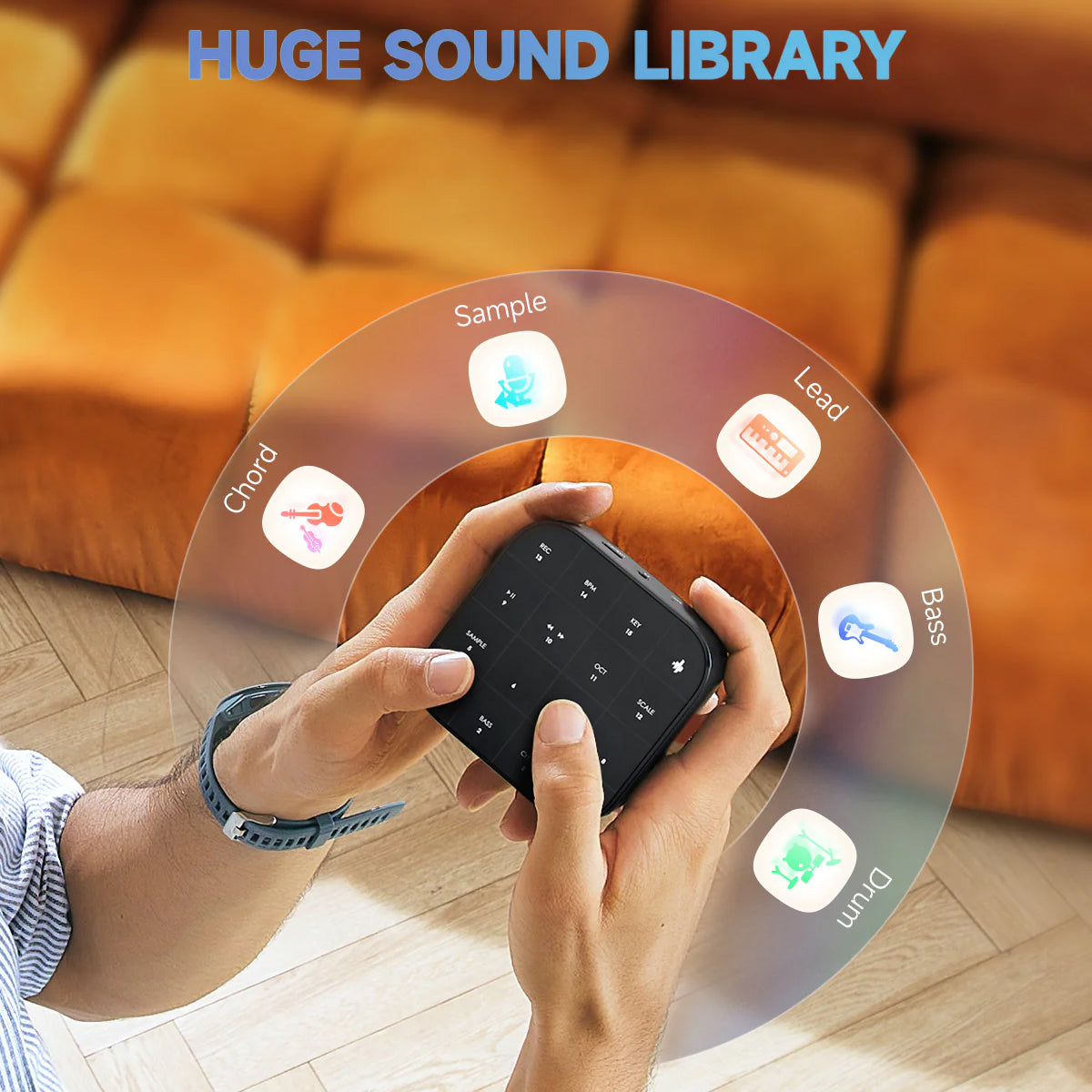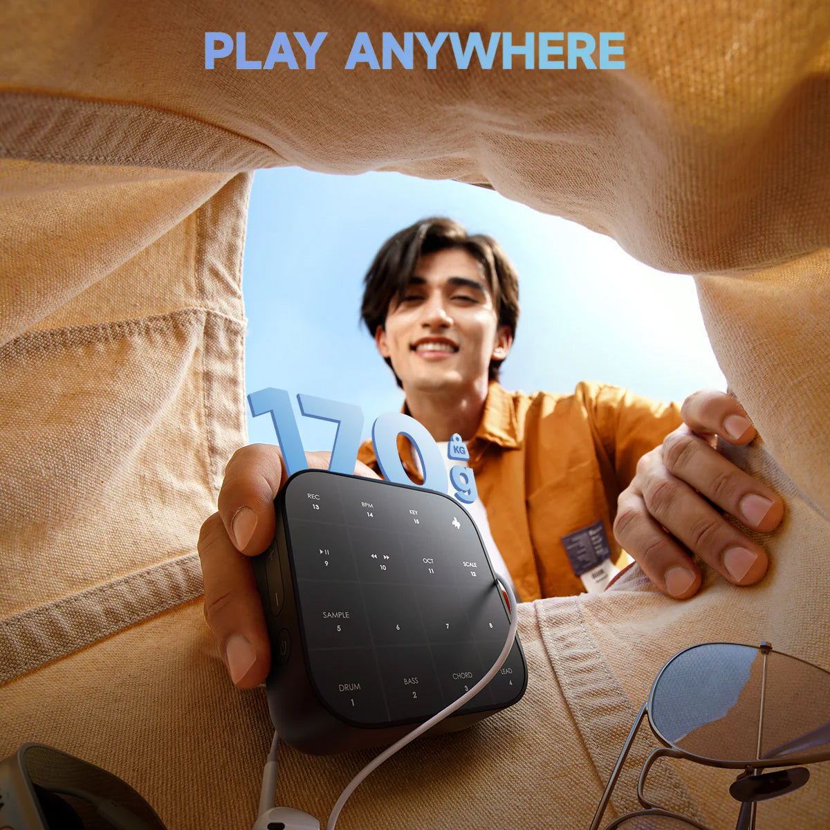 Functions as a sampler, synthesiser, looper, MIDI controller, and speaker. The built-in microphone supports sampling under different settings (SCALE, DRUM, BASS, CHORD, LEAD), making it a powerful tool for both studio and on-the-go use.