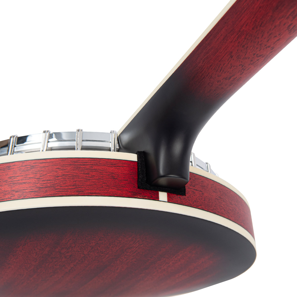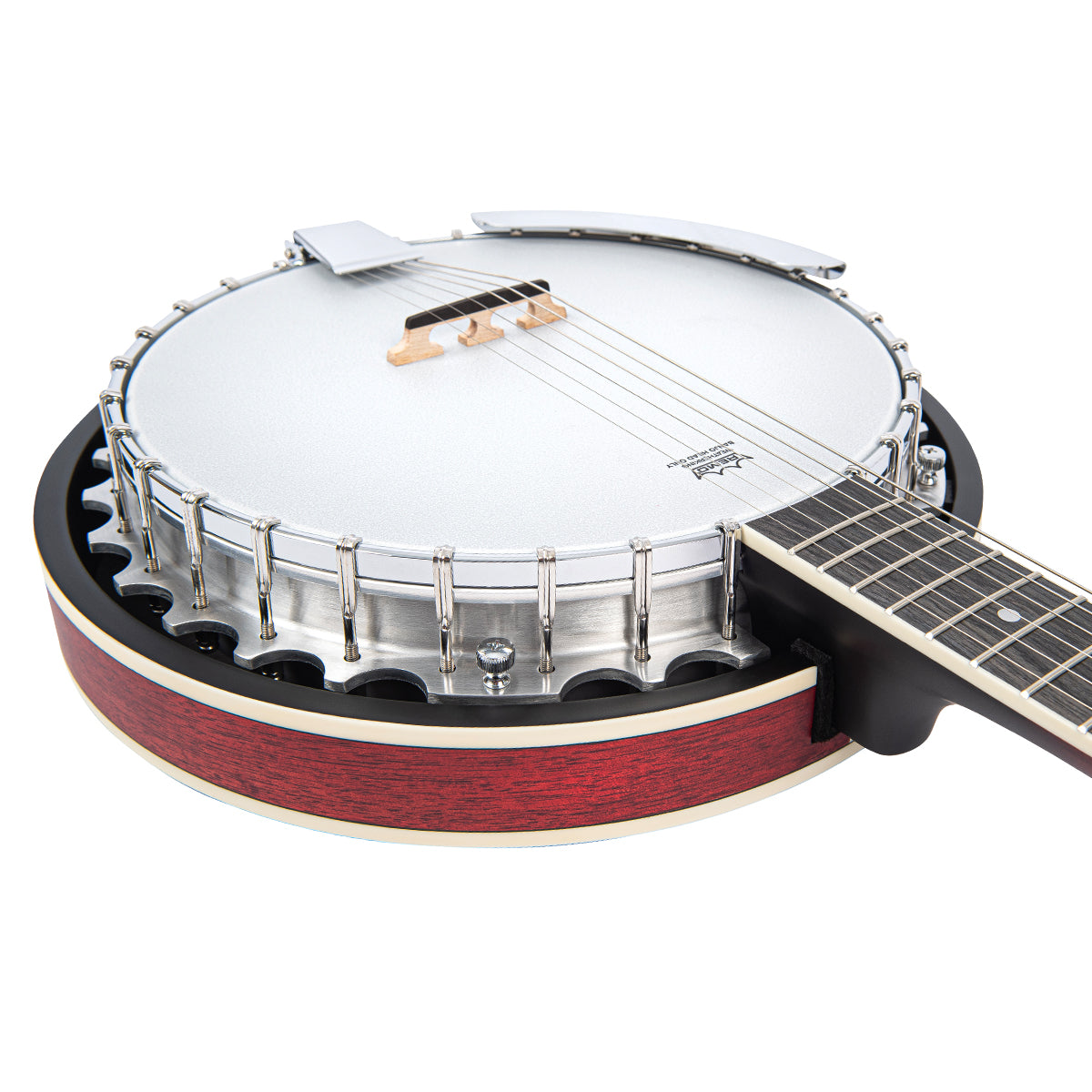 This is a mahogany 6-string guitar banjo with resonator. The VPBG26 features a Vintage guitar-style headstock, enclosed Grover-style machine heads and a semi-matt finish, which bring a quality touch to this versatile instrument. It's absolutely ideal for the guitar player who wants to access banjo style tones.